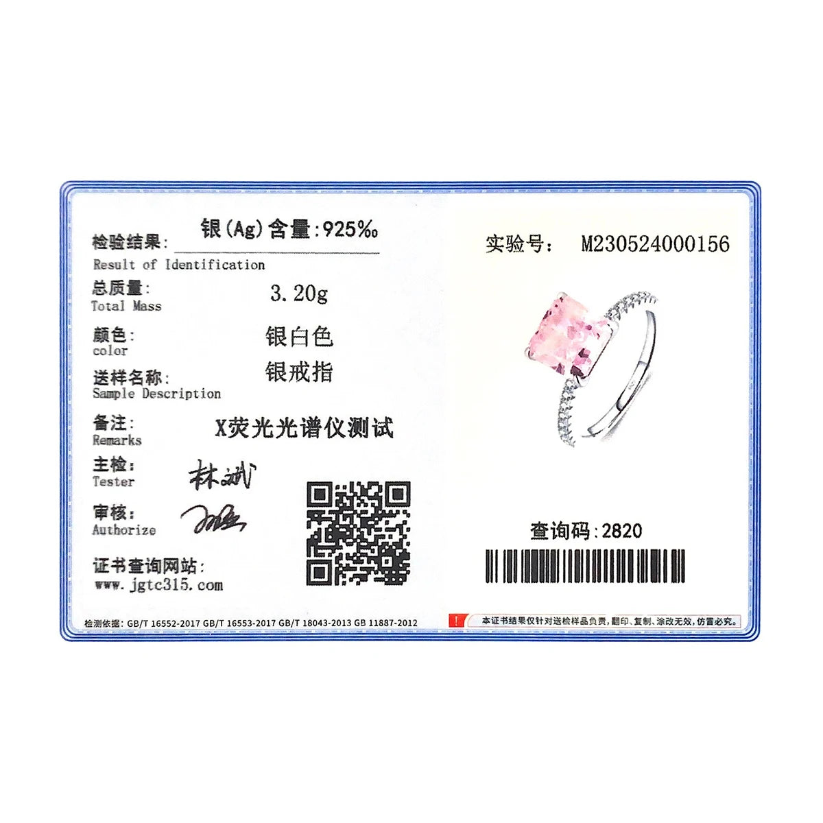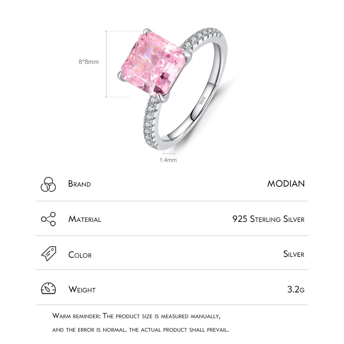 MODIAN 925 Sterling Silver Pink Crushed Ice Cut 2ct Square Sparkling Ring For Platinum Plated Women Classic Wedding Jewelry Gift