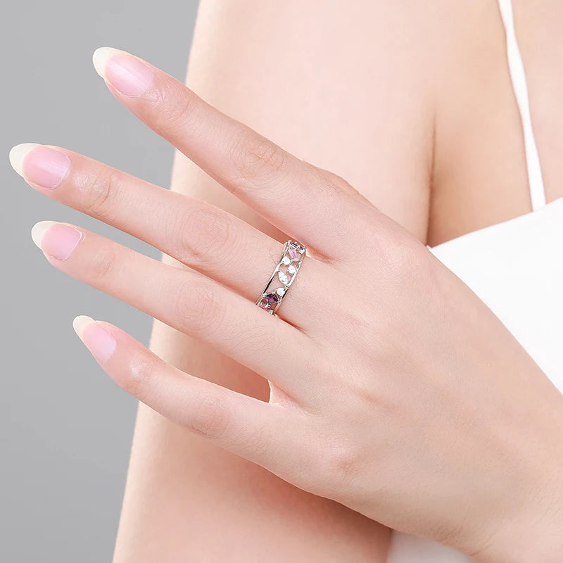 Modian 925 Sterling Silver Rainbow Color Zirconia Women Stud Earrings Geometric Stackable Ring Fashion Ears Fine Jewelry Sets