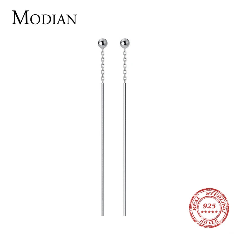 Modian Minimalist 100% 925 Sterling Silver Long Line Simple Beads Stud Earrings Fashion Party Ears For Women Jewelry Accessories