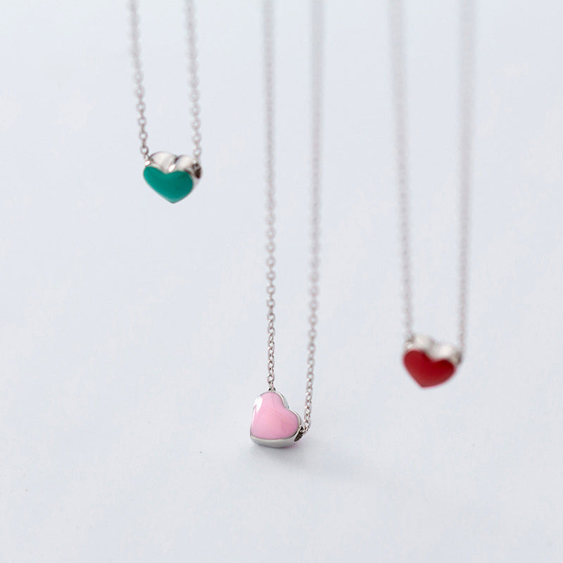 Enamel Hearts Sterling Pendant Necklace - 3 Colors